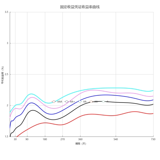 收益凭证收益率曲线(AA-) | 1.85 | 1.90 | 1.95 | 2.08 | 2.00 | 1.99 | 2.20 |